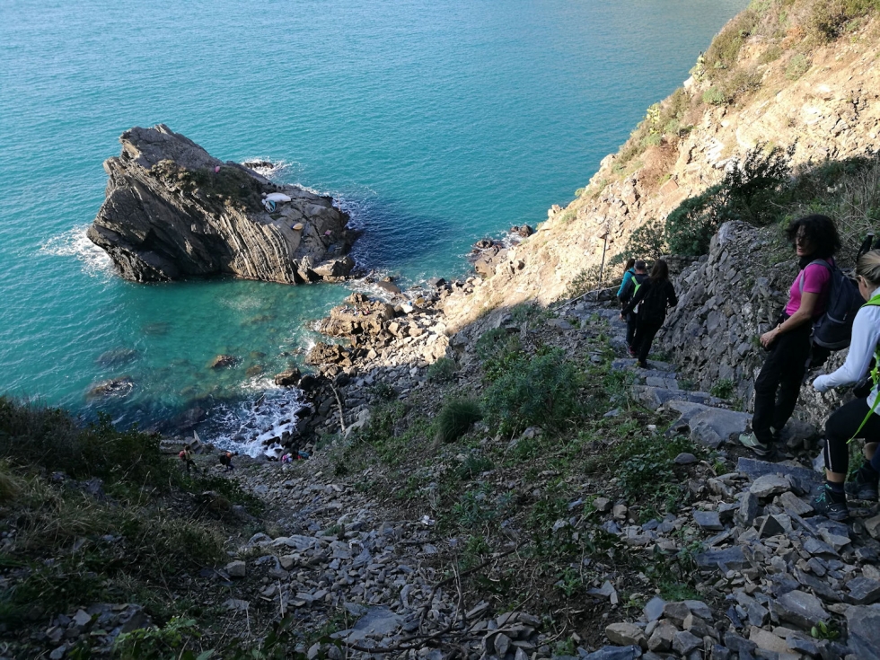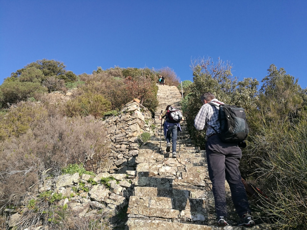 Replica dell'escursione della settimana prima (da buon incosciente avevo pensato di fare due giorni di fila, ma per fortuna il maltempo non me lo ha permesso...). Altra giornata bellissima, altro giro che ha emozionato tutti i partecipanti. C'è chi si è fatto tentare ed è venuto entrambe le volte, e una di queste ha portato tre sacchi di crocchette per i gattini di Schiara... sono numerosissimi e comunque in carne, considerando che Schiara d'inverno è praticamente deserta, non si capisce cosa possano mangiare... Da Campiglia a Schiara e Monesteroli, con lo scoglio ferale che ci guida, un giro impegnativo ma sicuramente uno dei più belli della Liguria.
